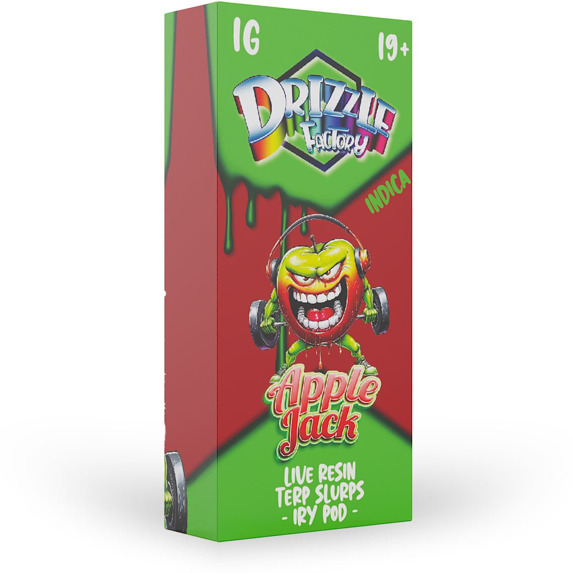 The Apple Jack IRY Pod from Drizzle Factory combines bold flavour with laid-back indica energy in a sleek, all-in-one vape device. Filled with 1 gram of live resin, this rechargeable, non-refillable IRY Pod is designed for convenience, consistency, and smooth performance—no extra hardware required.
