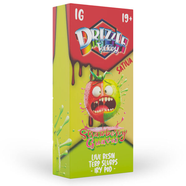 Drizzle Factory IRY Pods – 1g Live Resin Vape – Strawberry Guava Sativa