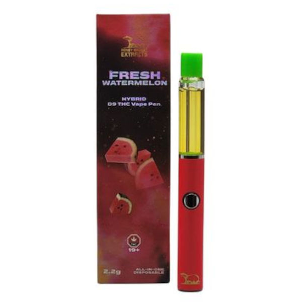 The Fresh Watermelon 2.2g D9 Vape Pen is a polished expression of clean fruit flavour and balanced Hybrid performance. Created by Honey Badger Extracts, this premium vape pen is designed for experienced users who appreciate restraint, clarity, and dependable quality. Built with high-purity Delta-9 THC distillate and naturally derived terpenes, it delivers a smooth and intentional experience that feels refreshing without excess.