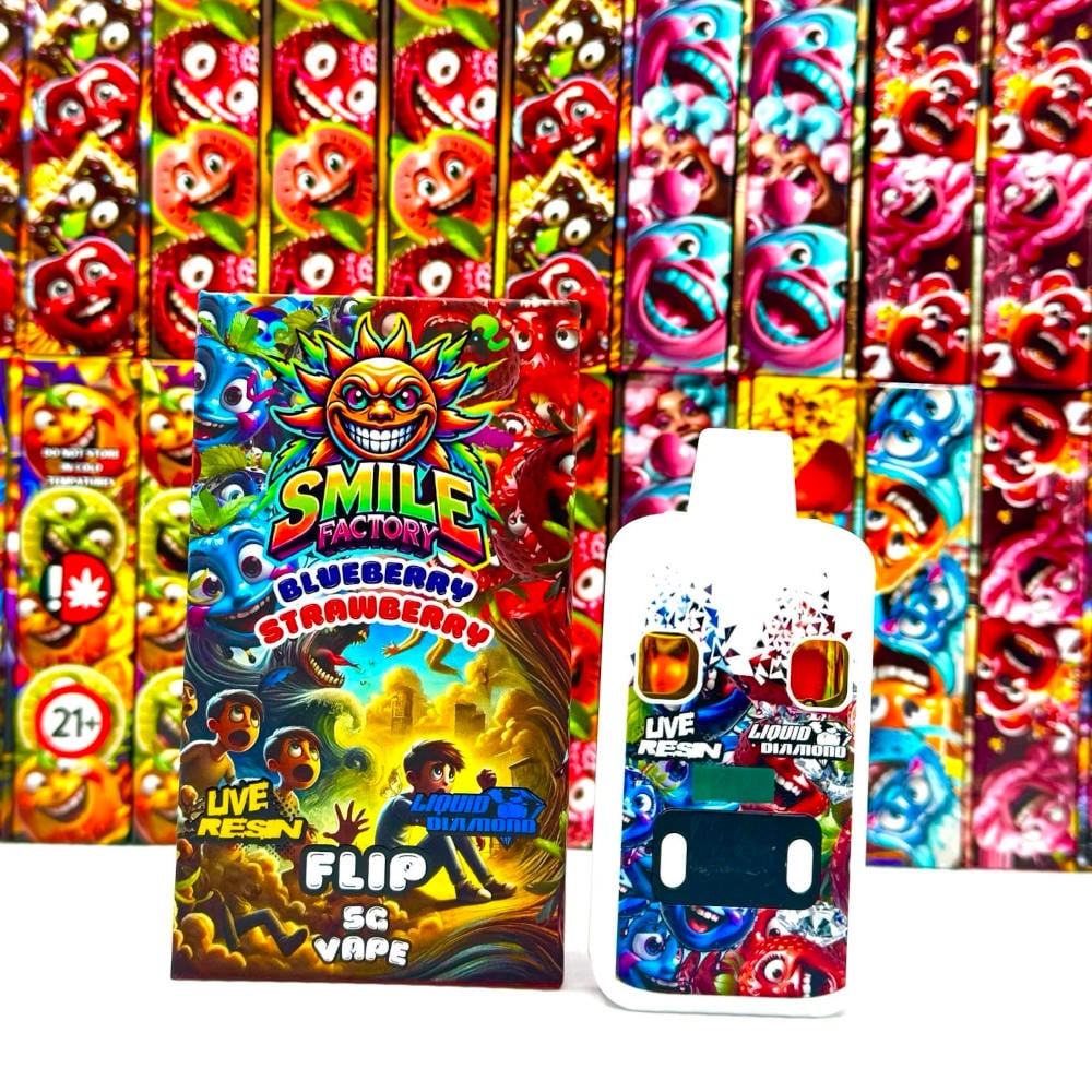 Berry-bold. Sweet. Flip-ready. The Smile Factory Blueberry / Strawberry Switch Vape (5 g) is your go-to for fruit-first versatility.